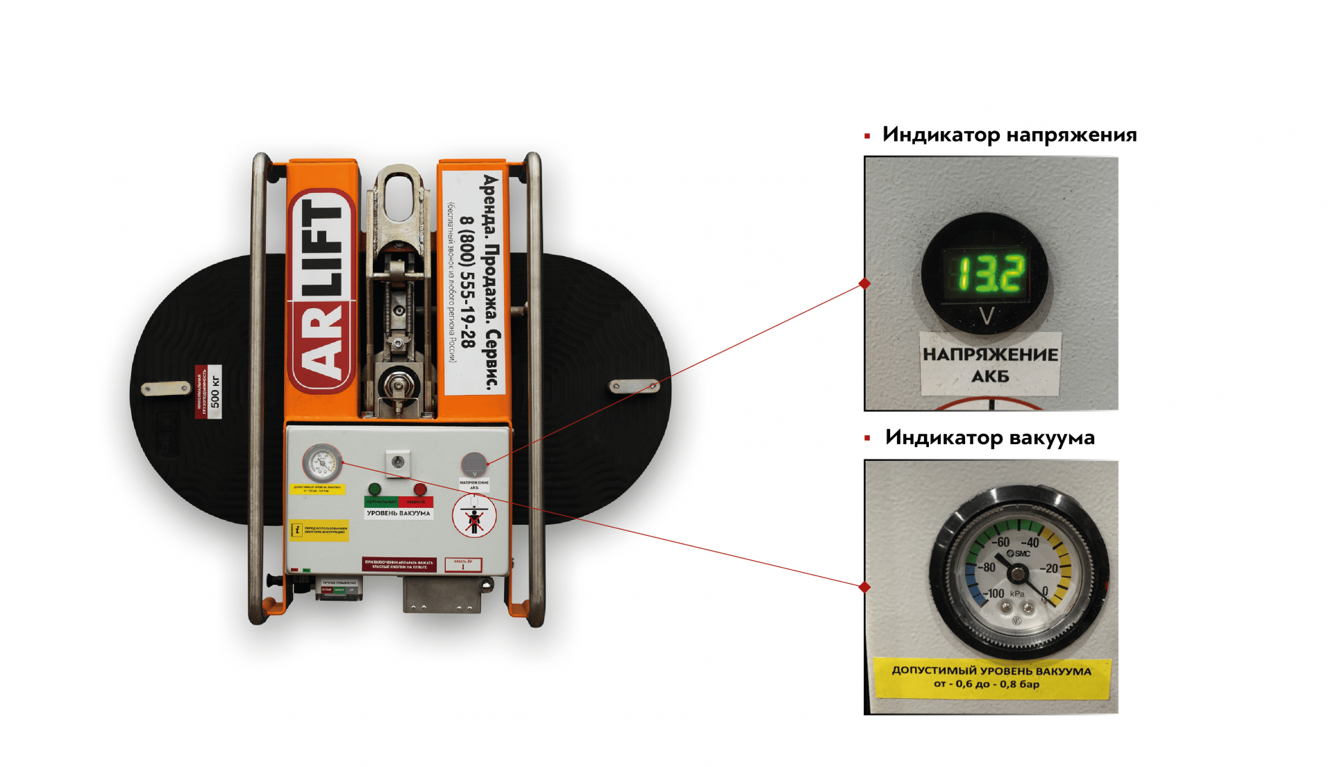 - индикатором уровня вакуума в полости вакуумной присоски