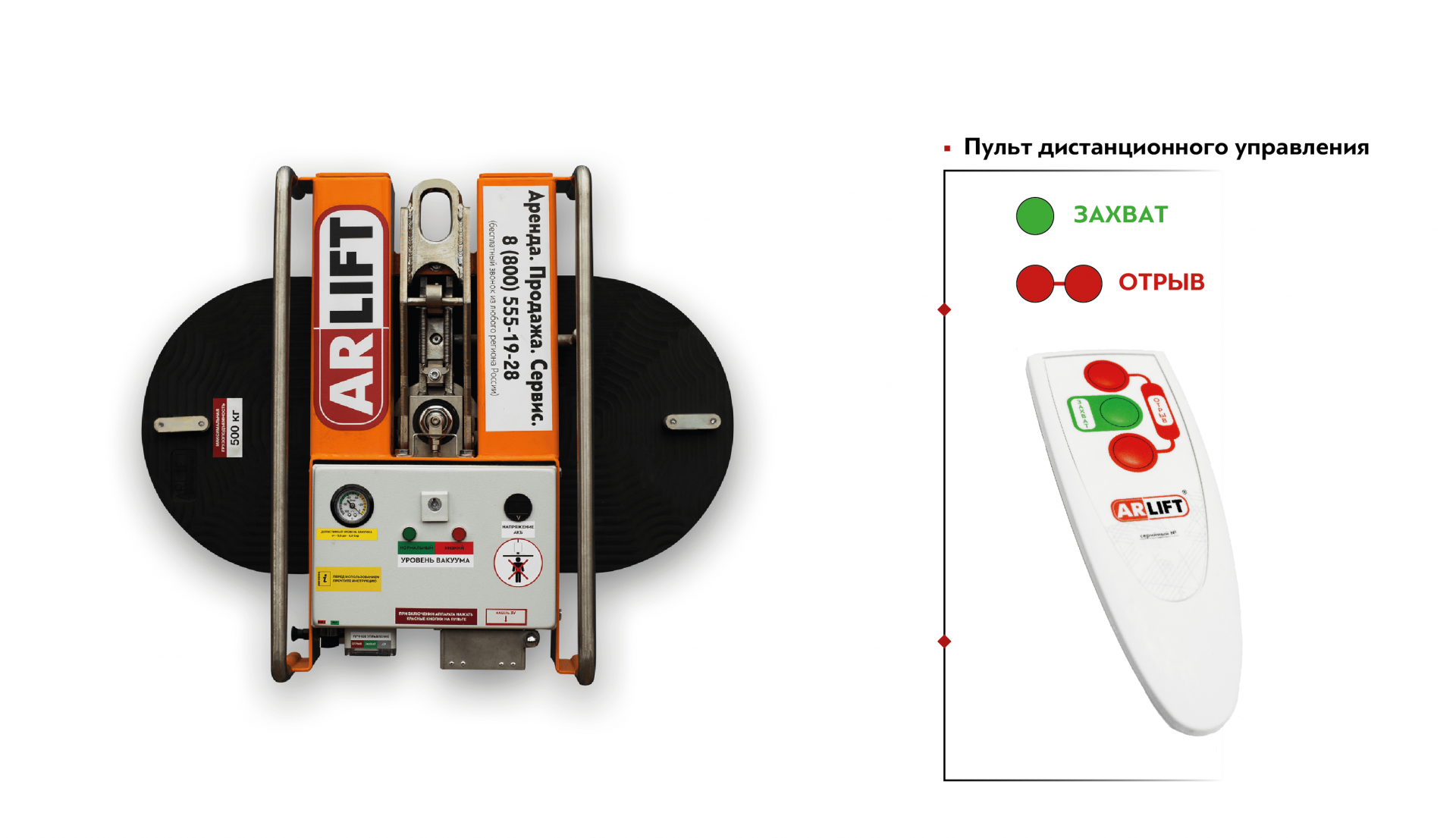 При выполнении работ с помощью вакуумного захвата на высоте 1.8 м и более следует использовать вакуумные захваты с дистанционным управлением освобождения груза.