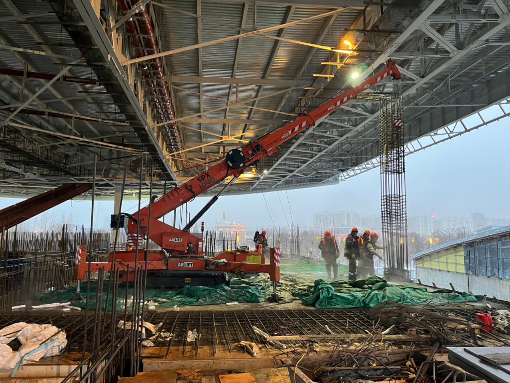 Все мини-краны в парке ARLIFT — гибридные: в режиме дизеля используются для улицы, в электрическом — для внутренних работ.