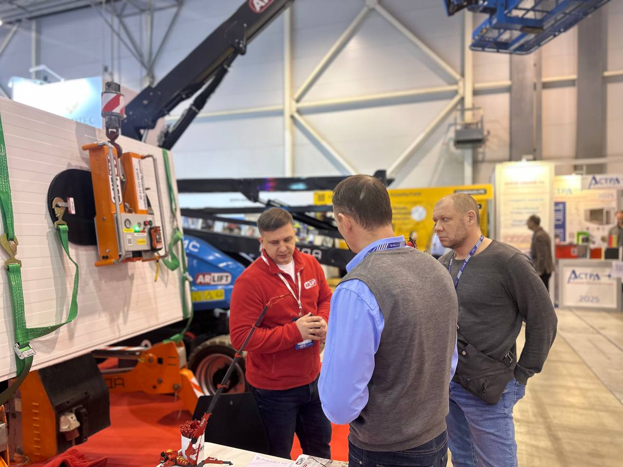 По традиции на нашем стенде была представлена техника из арендного парка Арлифт. Флагманы среди вакуумного оборудования — вакуумные захваты Arlifter GS-500 для монтажа стекла и сэндвич-панелей и Arlifter SP4 для стенового и кровельного монтажа: неизменные участники выставки! Разработанные и собранные на собственном производстве компании, с учетом суровых погодных условий, захваты соответствуют всем требования ГОСТ и могут выполнять работы при осадках и отрицательных температурах.