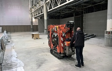 Мини-краном Jekko SPD360 благодаря электромотору и резиновым гусеницам удалось выполнить работы по строительству второго этажа внутри цеха, наполненного аппаратами для производства.