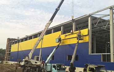 Вакуумными захватами ARLIFTER SP-4 / SPD-4 выполнен монтаж сэндвич-панелей на строительстве гипермаркета крупнейшей российской торговой сети «Лента». На этот раз в городе Челябинск.