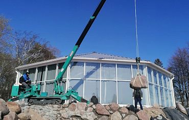 Мини-кран и вакуумный захват компании Арлифт помогли с монтажом стекла весом около 700 кг на одном из стадионов Северной столицы.