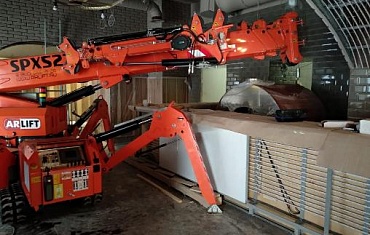 Мини-кран компании Арлифт SPX1275 помог установить оборудование на ограниченном пространстве на производстве в Казани.