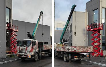 Наши объекты - Монтаж тяжелого бронированного стекла с помощью техники Арлифт!