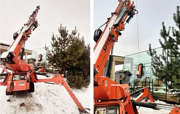 Стекла размером 4 на 3 метра смонтировали с помощью техники Арлифт: вакуумного захвата Arlifter GS-850 и мини-крана SPX527.