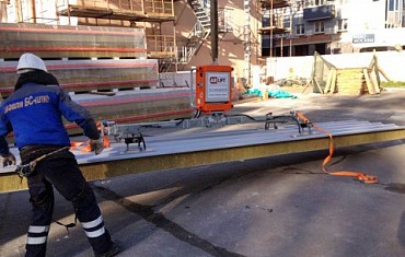 Монтаж сэндвич-панелей вакуумным захватом Clad Boy 3.