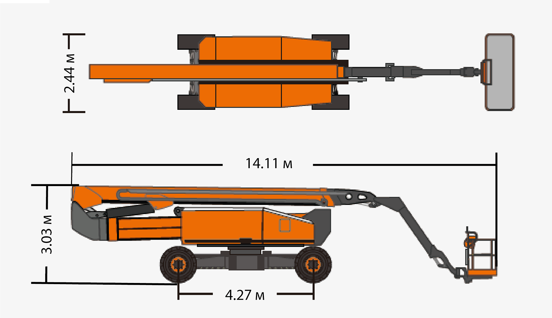 14.11 х 2.44 х 3.03 м