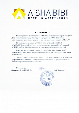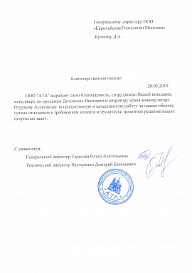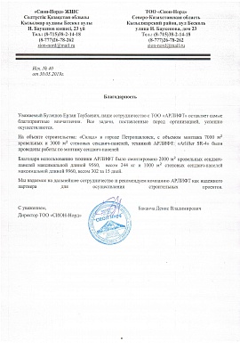 Благодарность от ТОО "NURLYTAU CONSTRUCTION"