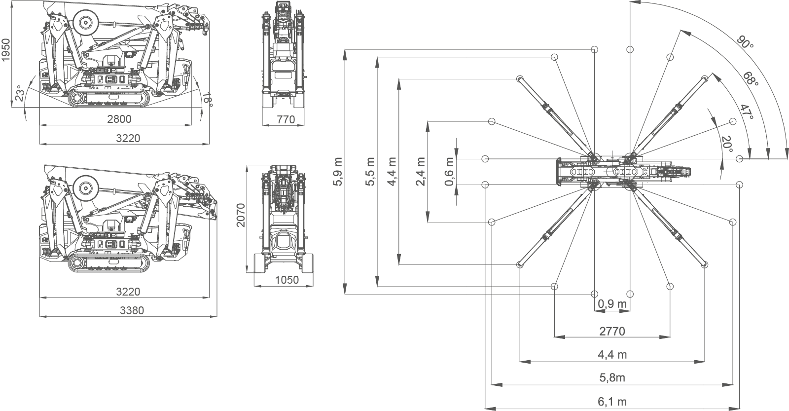 Обеспечивают отличную проходимость в узких проемах, причем не только в сложенном, но и в рабочем состоянии. Конструкция мини-кранов позволяет размещать их на совершенно непригодных для обычных кранов поверхностях.