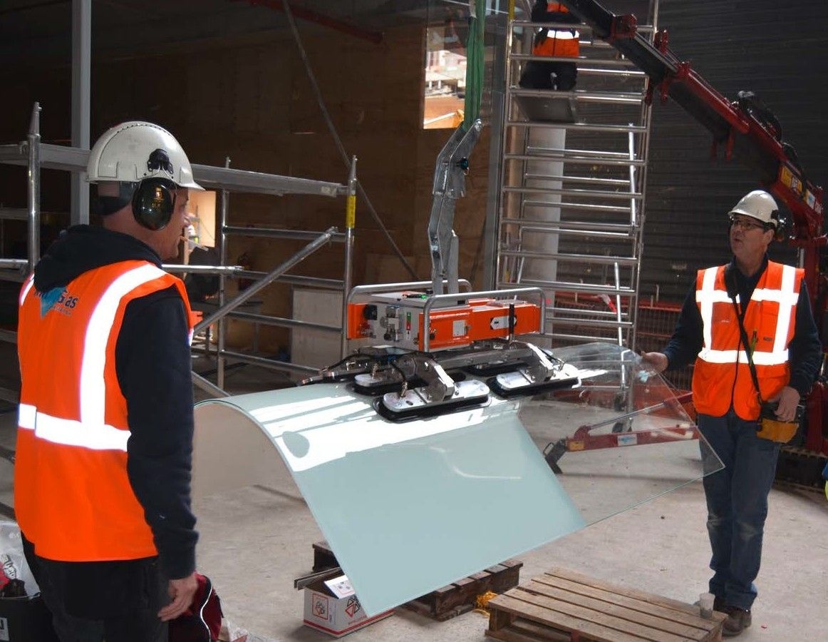 Испытание прошли успешно! Вакуумный захват Glass Boy установили стекольный элемент на свое место.