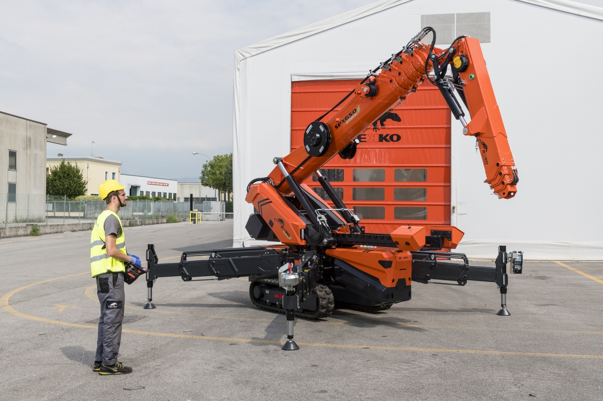 Все манипуляции с краном, включая его включение/выключение, осуществляются дистанционно с помощью пульта управления, что позволяет не только на безопасном расстоянии выполнять работу, но и выполнять задачи в местах непригодных для нахождения человека.