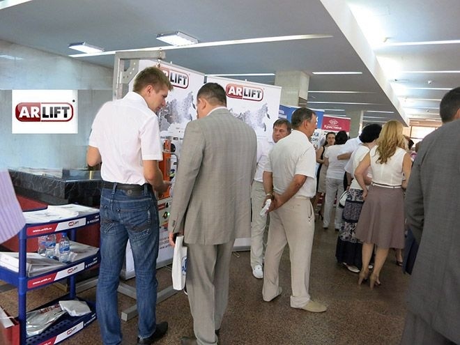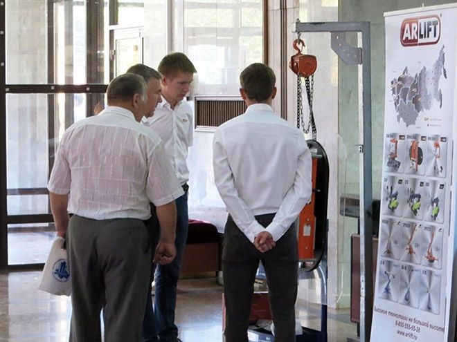 В фойе музыкального театра была организована встреча передовых строительных компаний Ростовской области, в числе которых был представлен стенд компании «Арлифт» с вакуумным подъемником Clad Boy, а также мини-кранами Jekko и спайдер-вышками BlueLift. Строители лично ознакомились с возможностями оборудования и получили подробную консультацию специалистов «Арлифт».