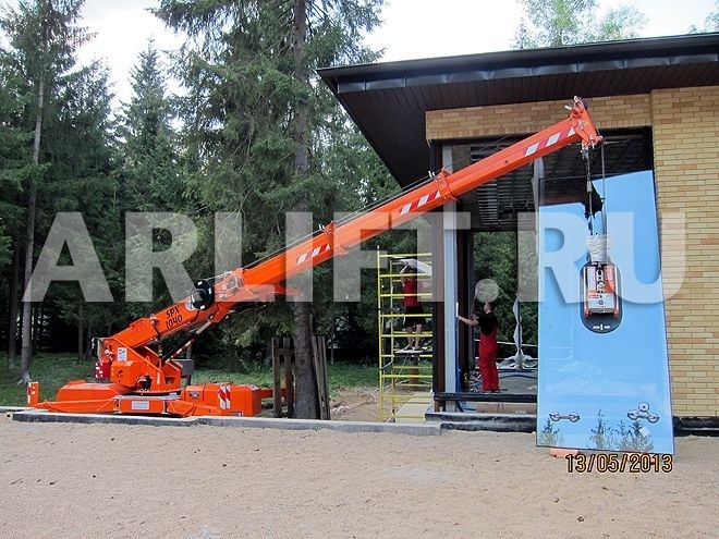 В начале июля, мини-кран JEKKO SPX 1040 в паре с вакуумным захватом Glass Boy 750 выполнил ряд уникальных работ по установке cтеклопакетов высотой 4м., шириной 3м., весом 700 кг. Сложность работы заключалась в местности, на которой происходил монтаж. Работы велись в элитном поселке «Шервудский лес», создатели поселка постарались сохранить красоту первозданного леса и ограничить сруб деревьев на его территории.