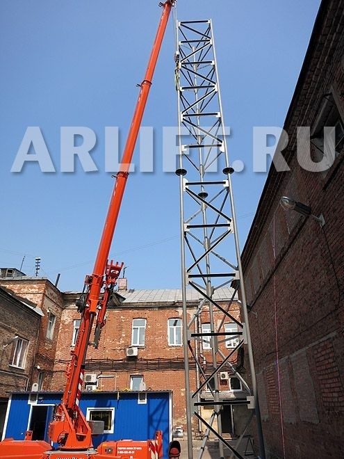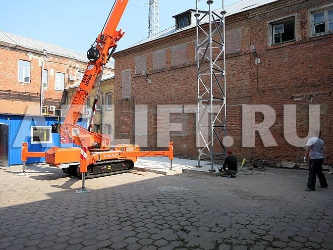 Компактность мини-крана, позволила ему с легкостью проехать в маленькую арку, произвести работы в сложных стесненных условиях и установить громоотвод, другая грузоподъемная техника не могла выполнить данную операцию, так как не обладает компактностью кранов линейки JEKKO.