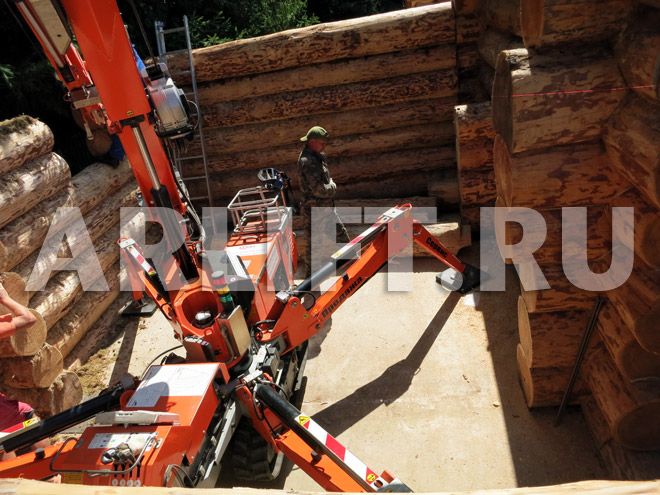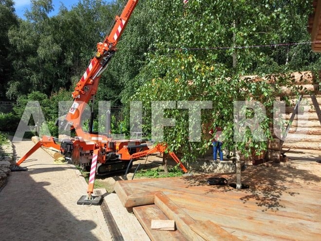 Универсальный мини-кран JEKKO SPD360 выполнил работы по монтажу бревенчатого сруба весом до 500 кг. Благодаря своим универсальным характеристикам, обладая шириной всего 80 см, мини-кран JEKKO, легко работал в стесненных условия и смонтировал тяжелый брус разного калибра.
