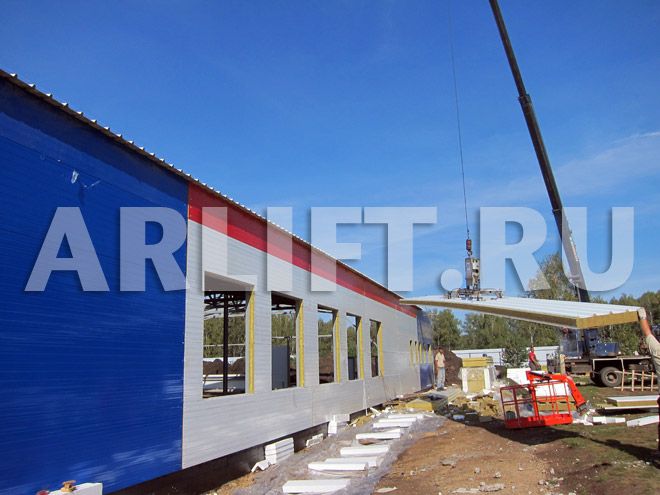 Для монтажа кровельных сэндвич-панелей длиной до 12 м и весом до 320 кг используется вакуумный подъемник ARLIFTER SP-3.