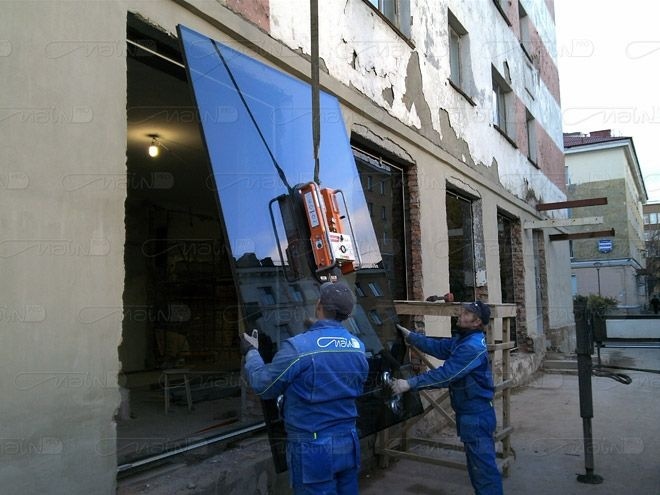 С помощью вакуумного подъемника GlassBoy 750 так же качественно и оперативно были смонтированы стеклопакеты весом 700-750 кг в кафе «Север».