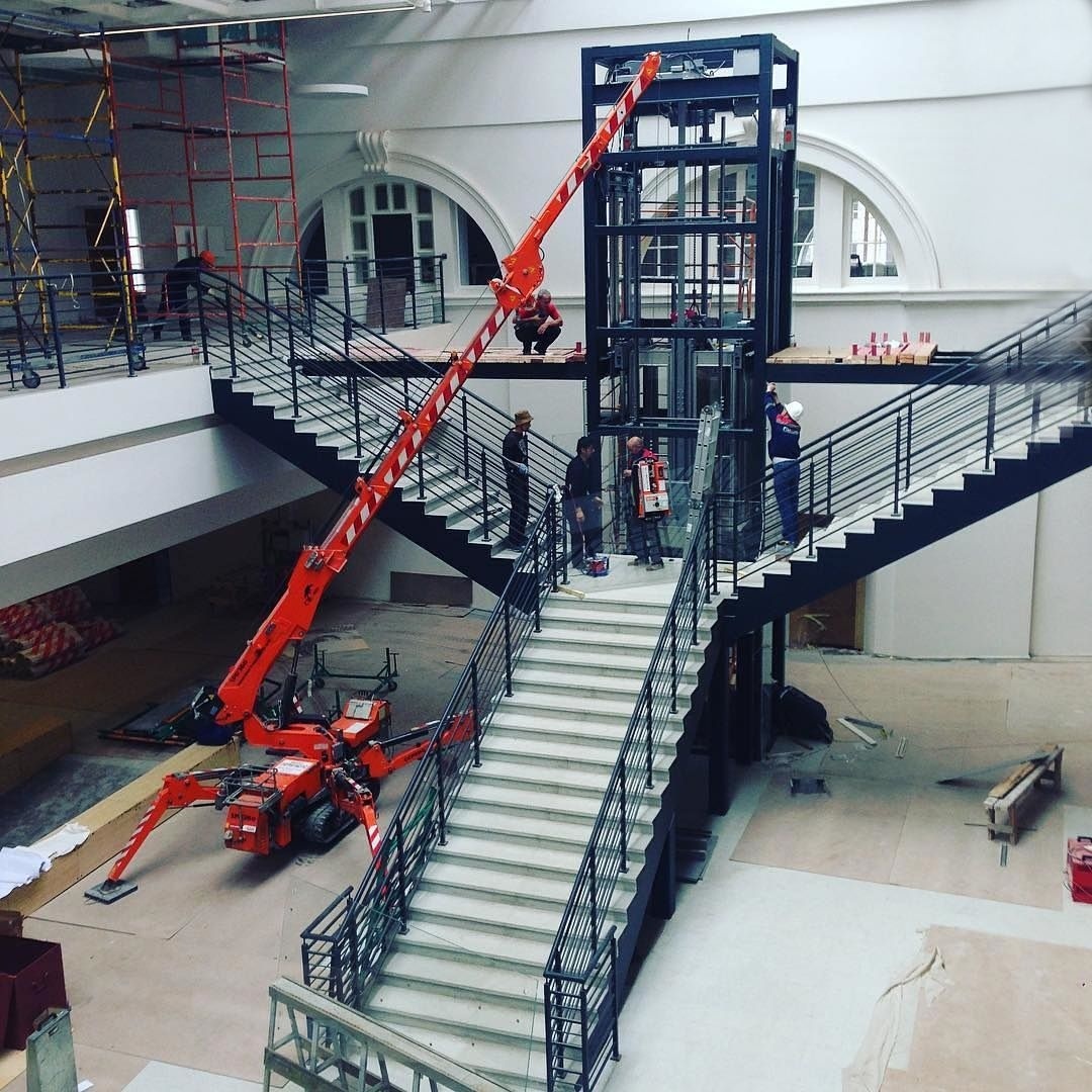 Для остекления шахты лифта требовалось оборудование, позволяющее производить работы в узких пространствах, при этом не повреждая поверхности стекла и пола. Для решения задачи было выбрано оборудование АРЛИФТ - вакуумный захват Glass Boy 500 и мини-кран JEKKO SPD360CDH.