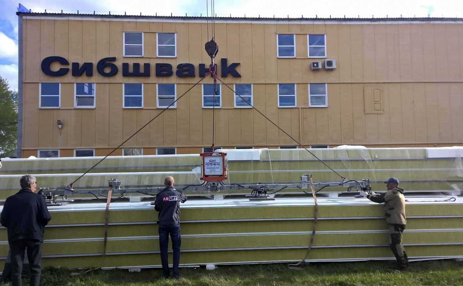 Для компании АРЛИФТ задача стояла непростая – требовалось установить кровельные сэндвич-панели длинной 14,5 метра и весом 540 кг в рамках строительства здания компании «Сибшванк».