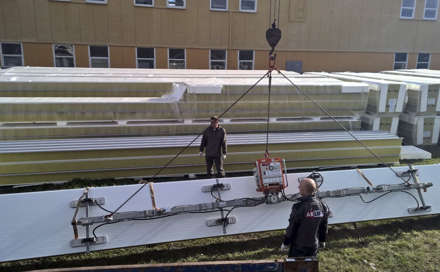 Вакуумный захват ARLIFTER SP-4 прекрасно справился с работой по монтажу кровельных сэндвич-панелей в компании «Сибшванк», клиент остался доволен выполненной работой.