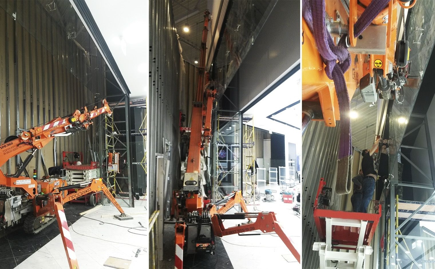 Для монтажа витрины магазина Летуаль была выбрана «тяжелая артиллерия» - неизменный тандем – мини-кран SPD360CDH и вакуумный захват ARLIFTER GS-500.