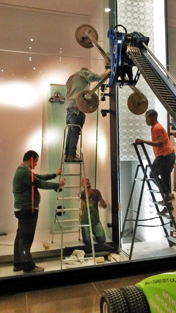 Замена разбитой укрепительной стеклянной конструкции.