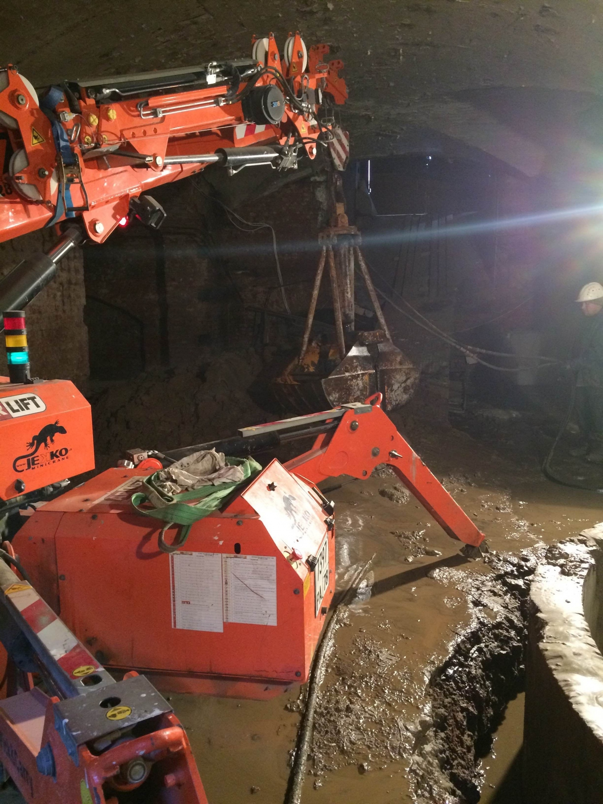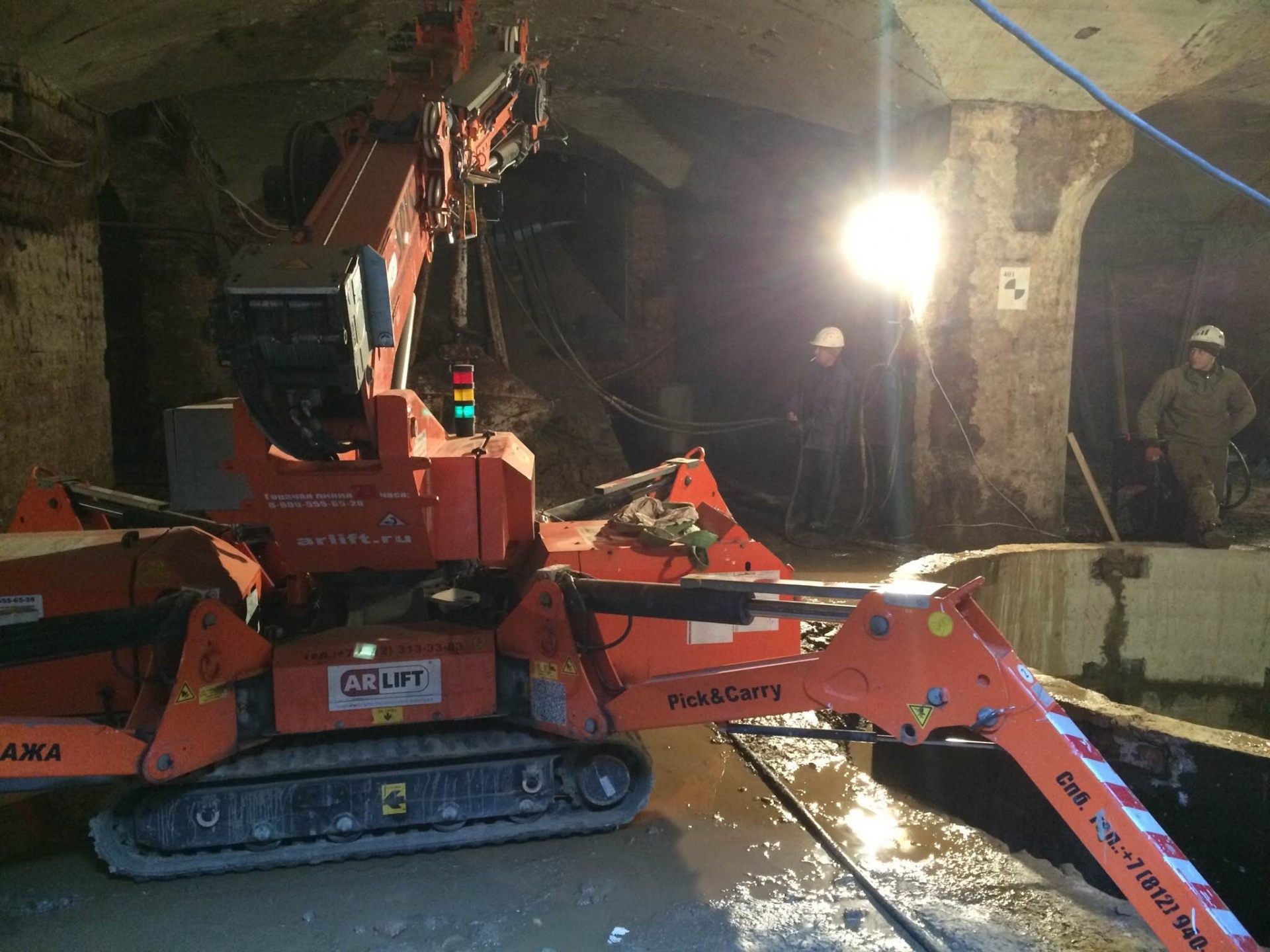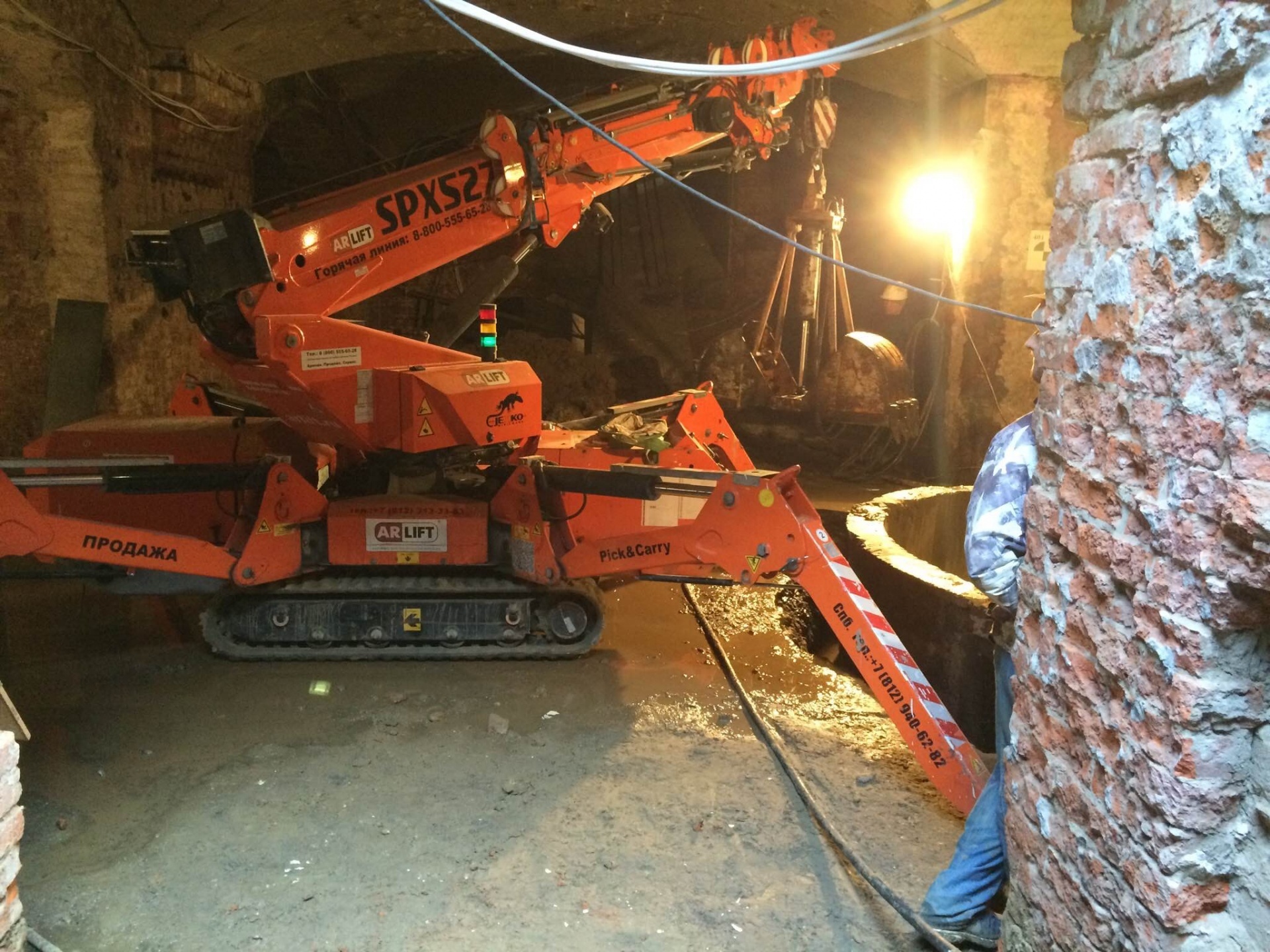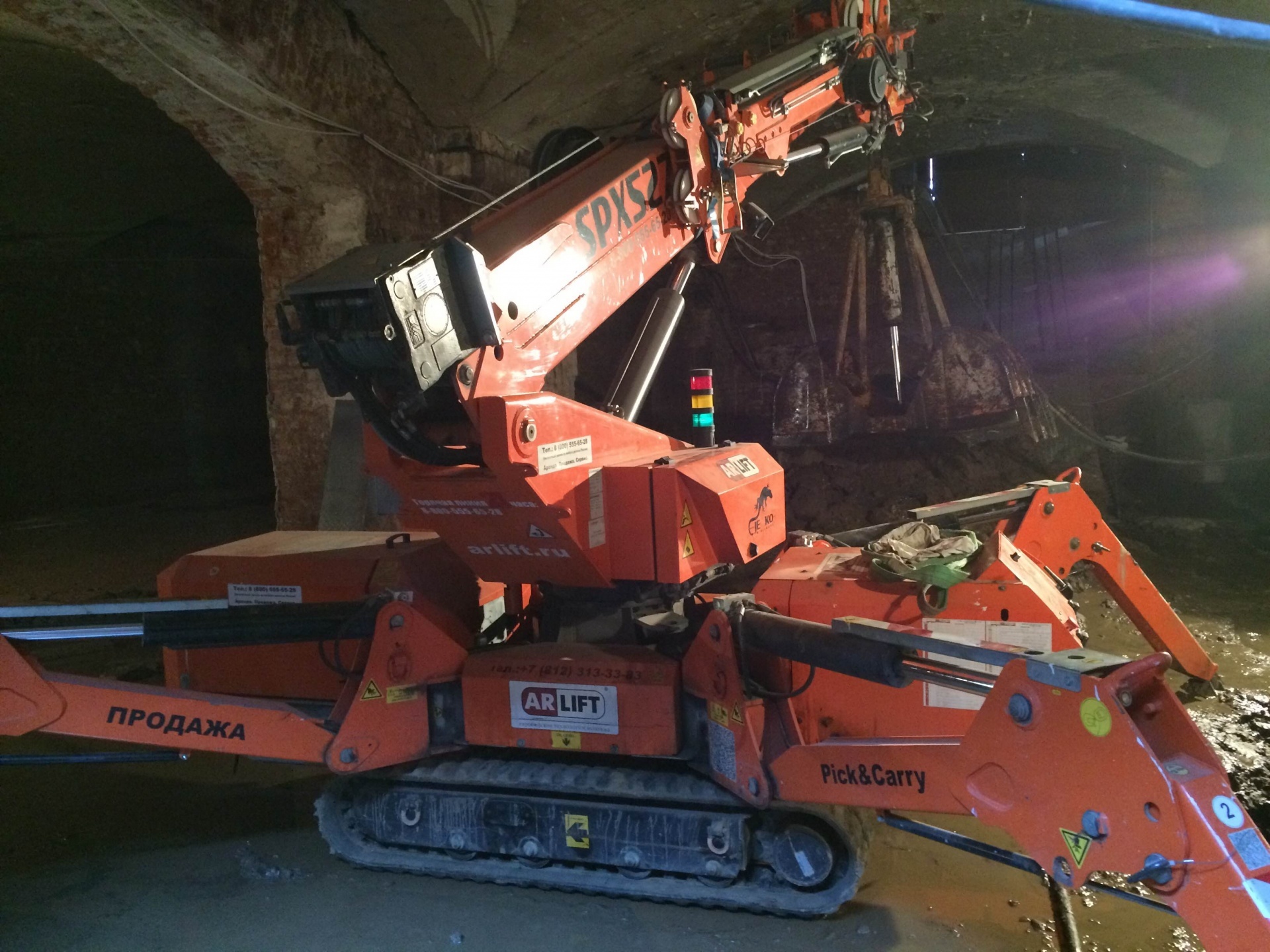 На крюкоблок установлен гидравлический автономный грейфер. Производятся работы по копанию колодца.