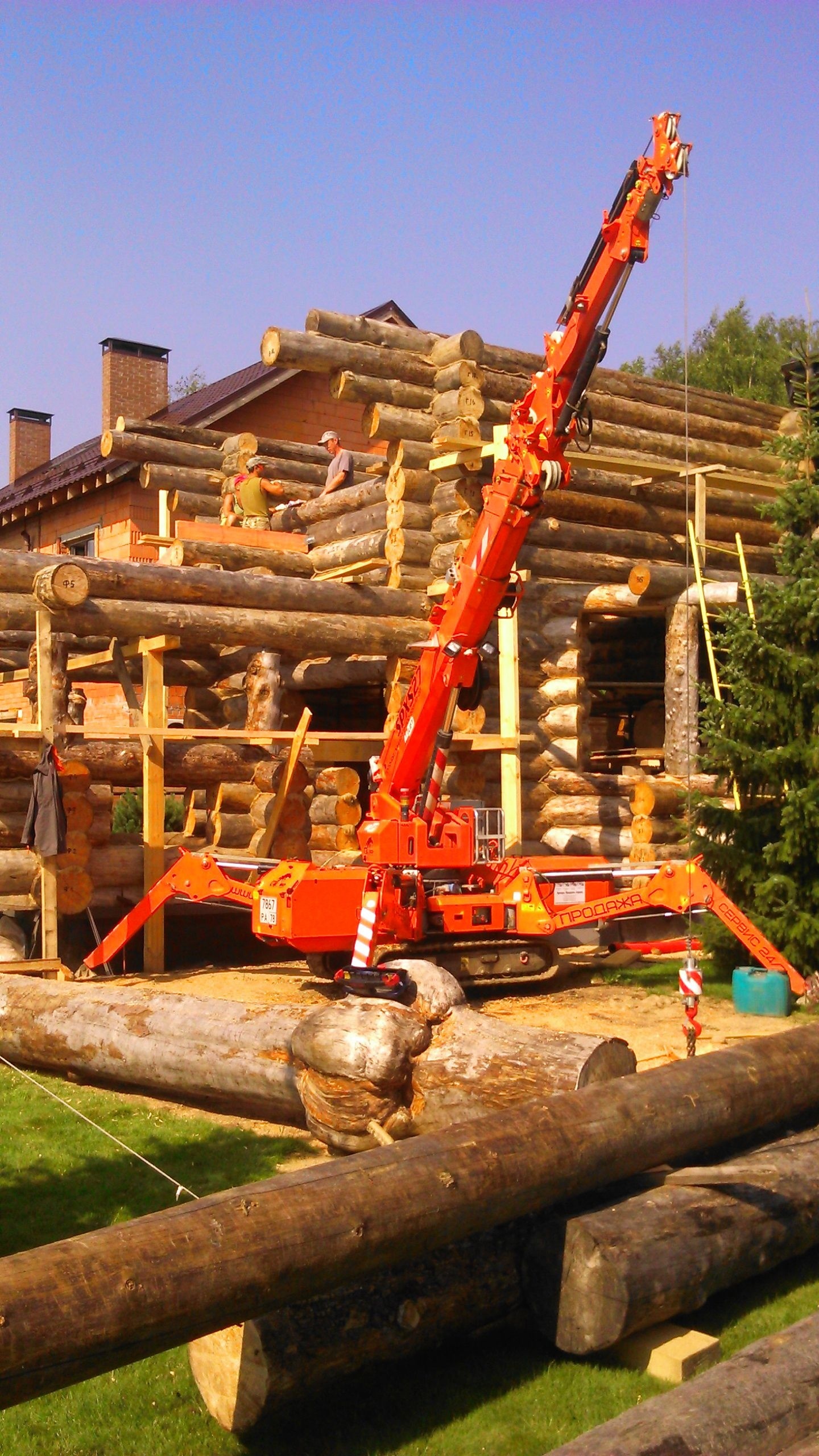 Мини-кран JEKKO прекрасно справился с подъемом бревен на ограниченном пространстве. Работы были произведены оперативно и точно.