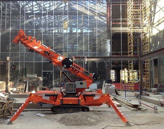 Мини-краном JEKKO SPX527 выполнен монтаж металлоконструкций внутри двора строящегося торгового центра. Монтаж проводился на ограниченном пространстве.