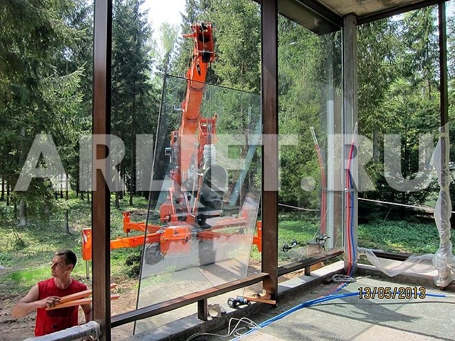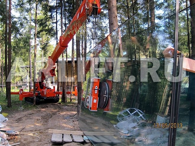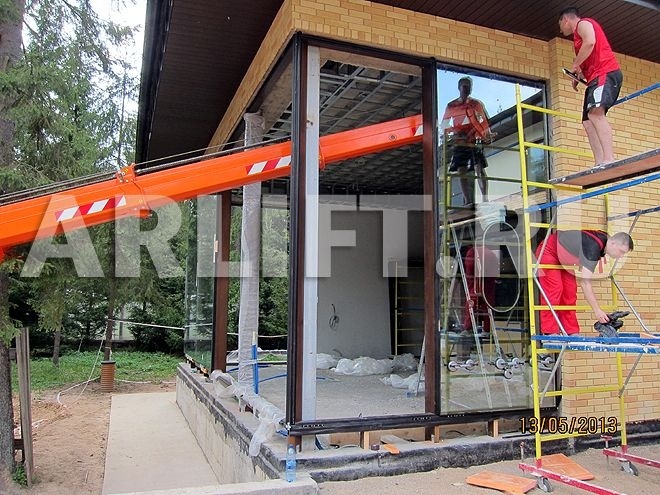 Монтаж 36 стеклопакетов с помощью мини-крана SPX1275 и вакуумных захватов Arlifter GS-850.
