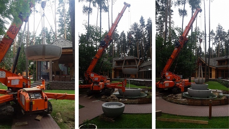 Монтаж фонтана с помощью мини-крана - быстро и качественно!