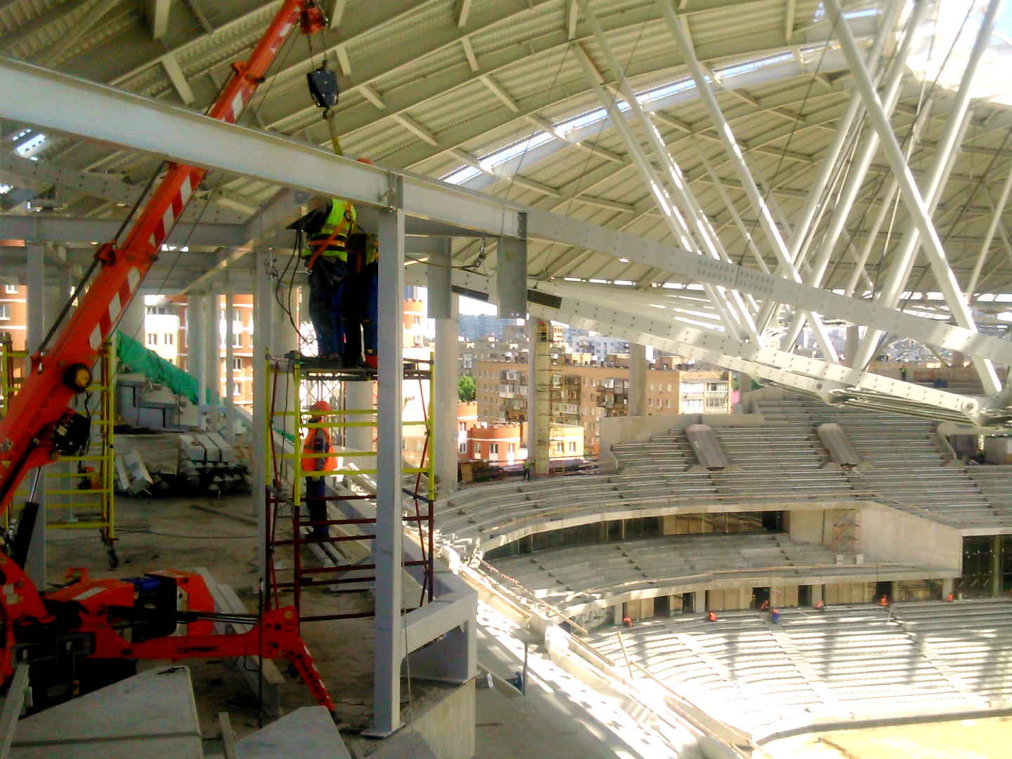 За два дня установить стеклянные ограждения по периметру стадиона?! Легко, когда используешь профессиональное оборудование компании Арлифт.