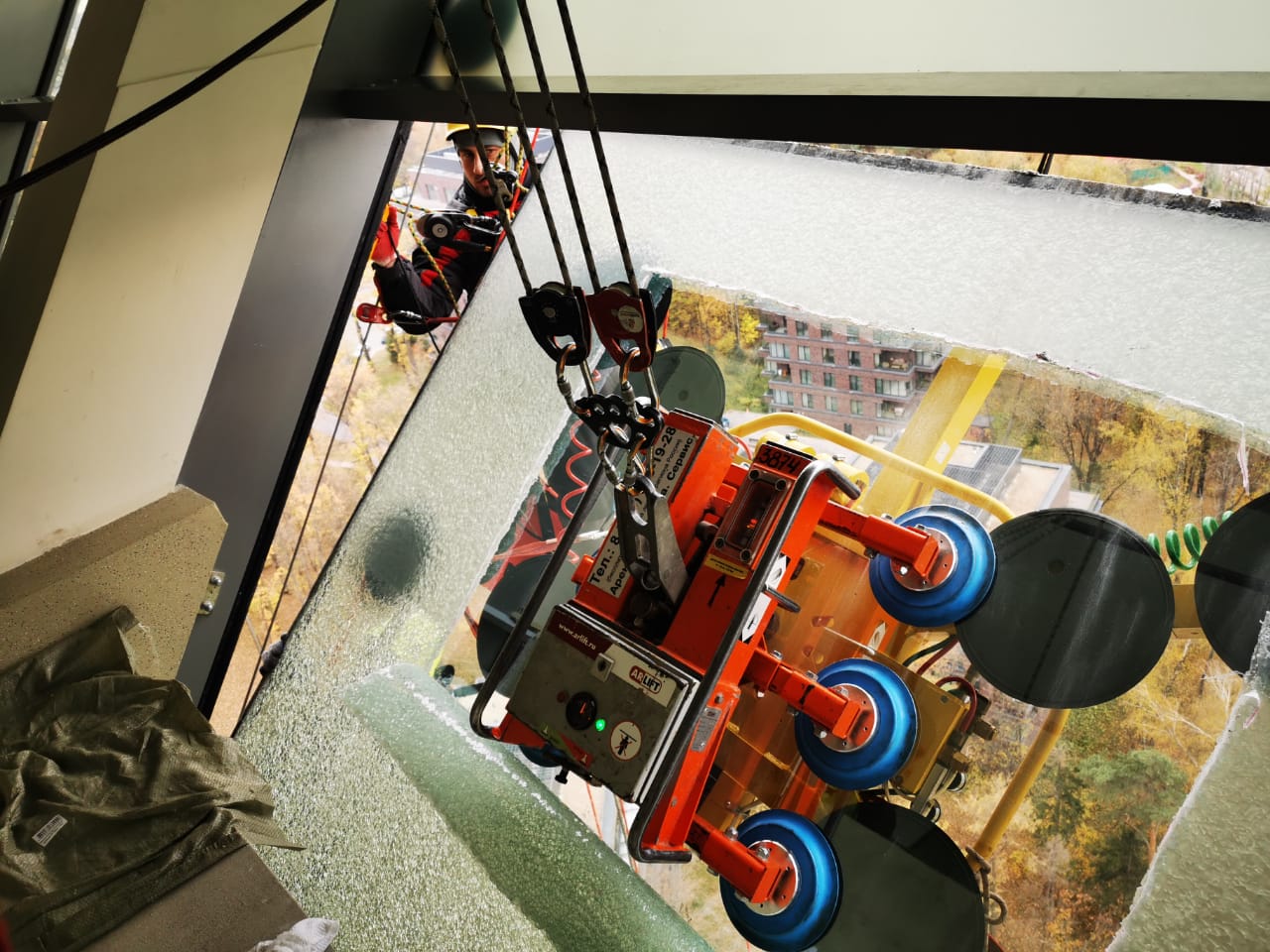 А стропы и резервный накопитель вакуума гарантирует максимальную безопасность работ, что является важным фактором, особенно, когда работы проводятся на высоте.
