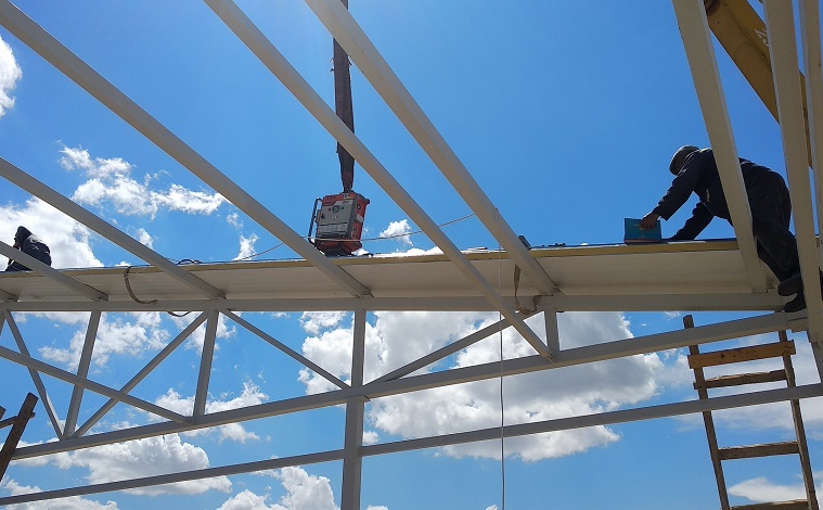 В Казахстане, городе Алма-Ата, полным ходом идет строительство птицефабрики. Как показывает практика, для подобного рода сооружений лучше всего подходит вариант из сборных металлоконструкций и сэндвич-панелей (каркасные и бескаркасные ангары). А лучшем способом для монтажа таких панелей являются вакуумные захваты, так как они дают гарантию того, что при возведении здания не будут нарушены строительные технологии. Вакуумные траверсы бережно крепятся к материалу, тем самым исключая их деформирование. Особенно это имеет значение, когда речь идет о кровельных сэндвич-панелях.