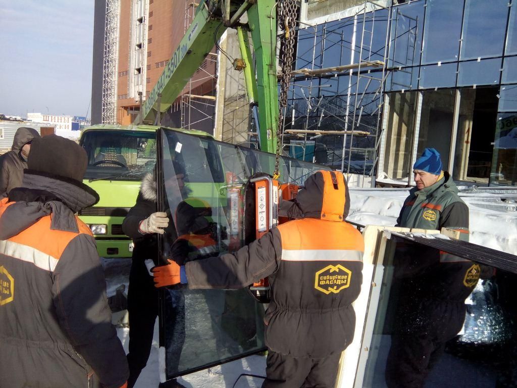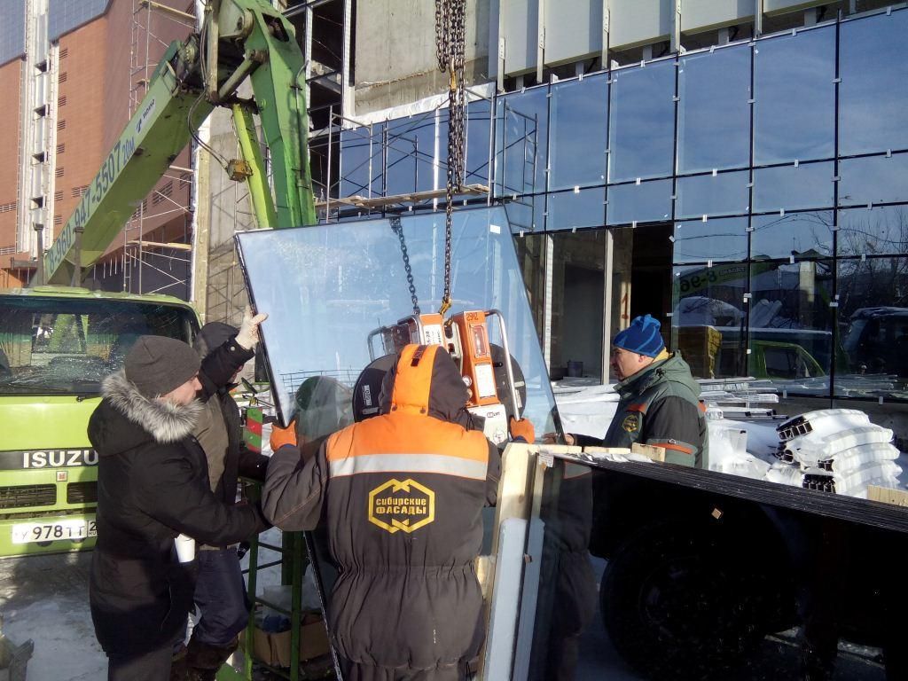Монтаж стеклопакетов на объекте ТРЦ "Пионер".