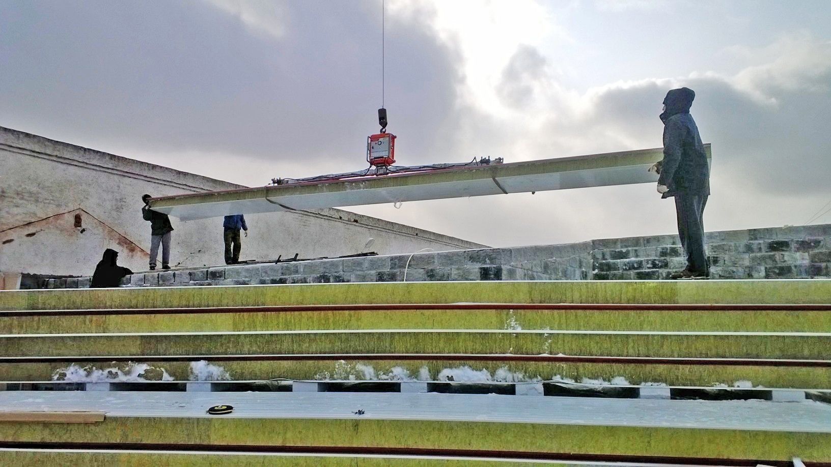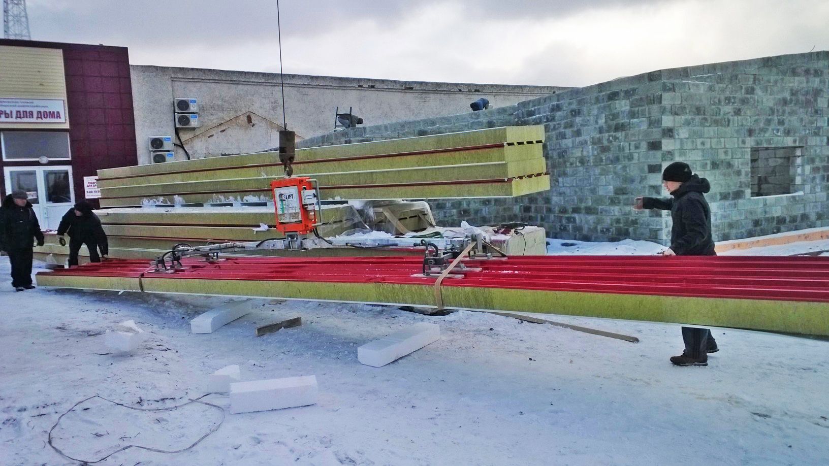 Монтаж кровельных сэндвич-панелей 12 метров c помощью вакуумного захвата ARLIFTER SP-4.