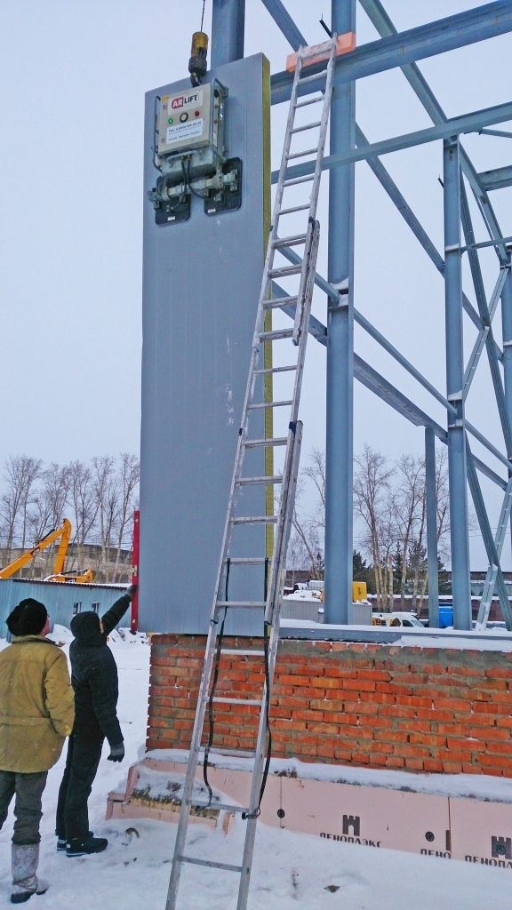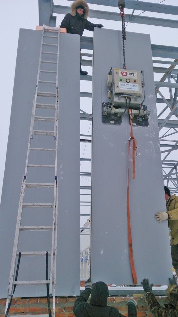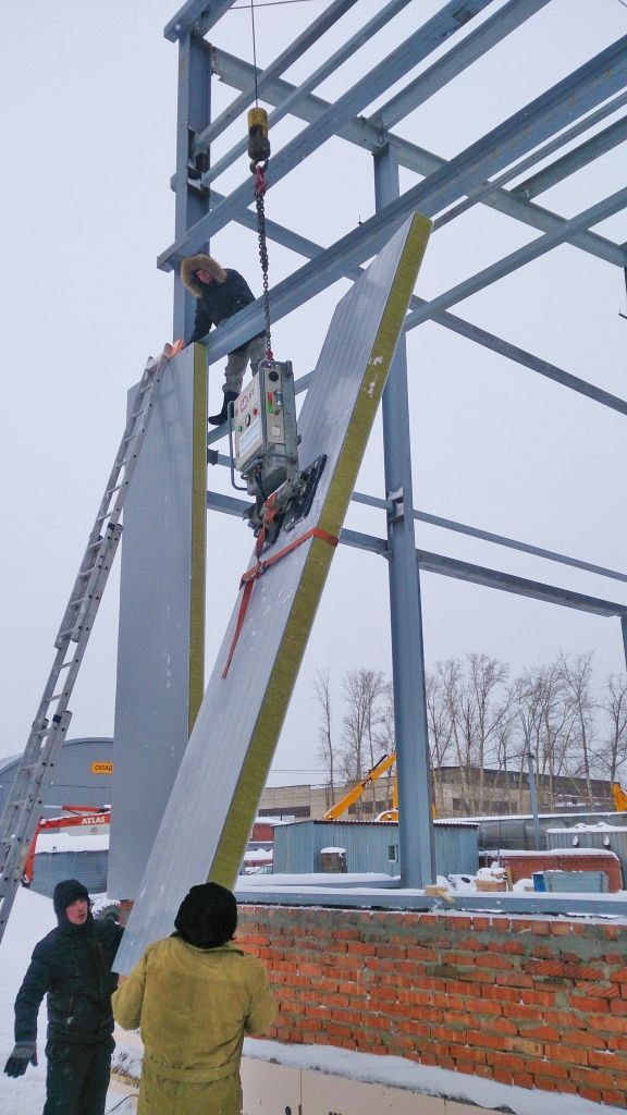 Вертикальный монтаж 6-ти метровых сэндвич-панелей в минусовую температуру.
