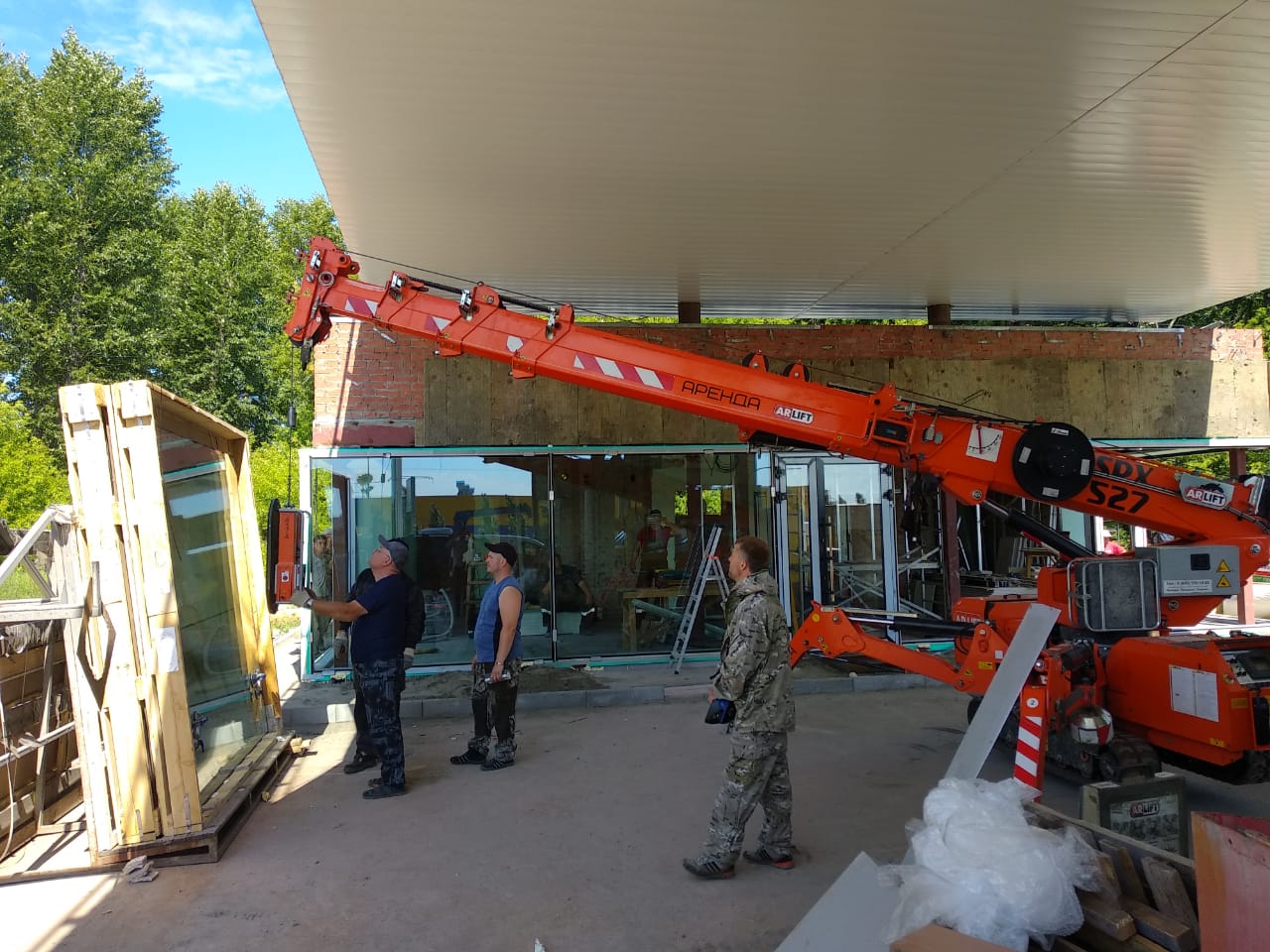 Монтаж крупногабаритного стекла на АЗС в Новосибирске