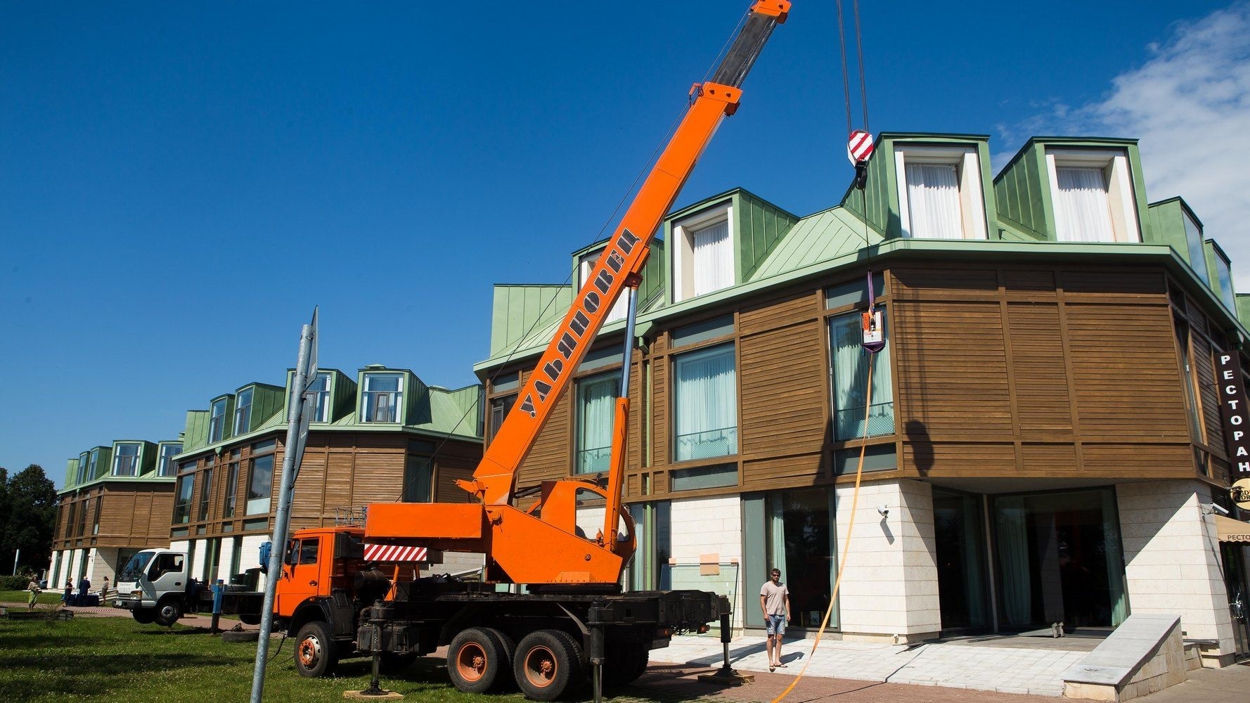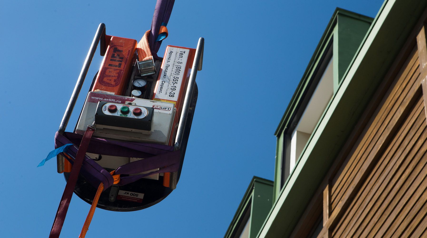 При остеклении гостиницы «Новый Петергоф», расположенной в городе-дворце Петергофе, использовались стёкла разных размеров и форм. Но задачей техники АРЛИФТ было смонтировать стекла весом до 500 килограммов.