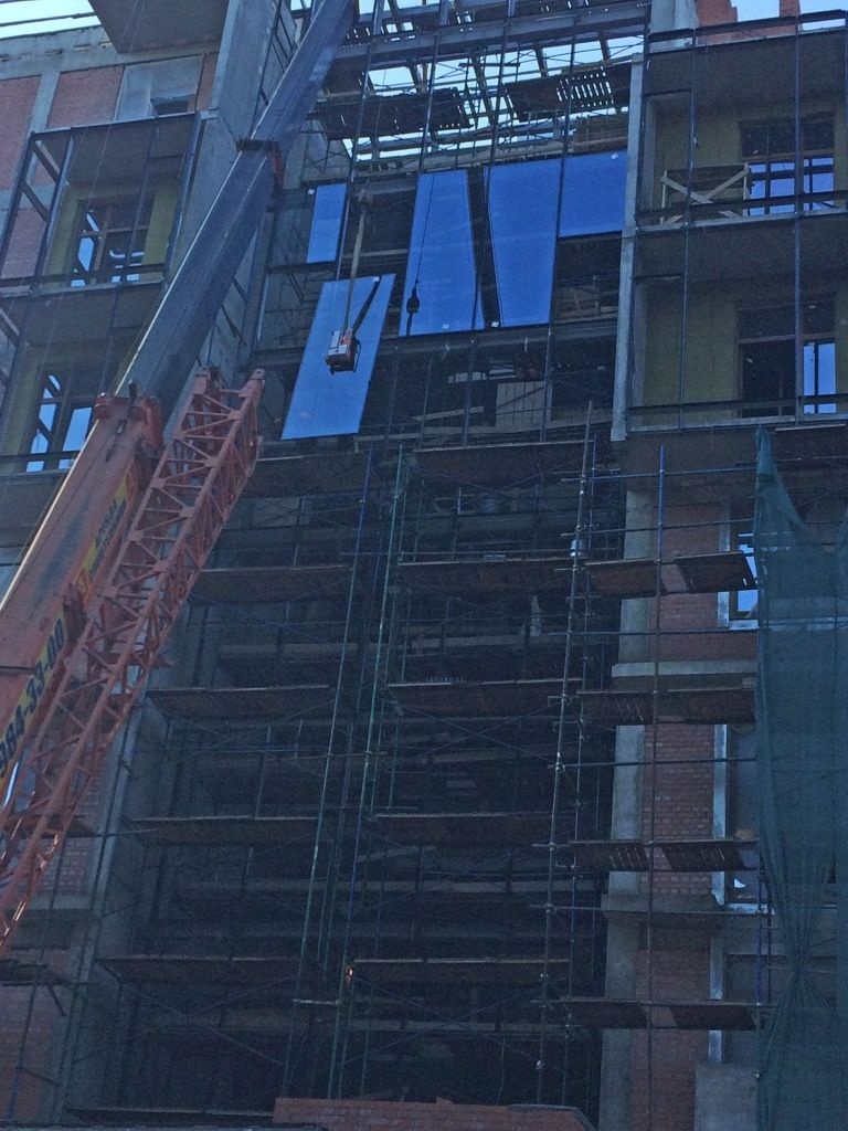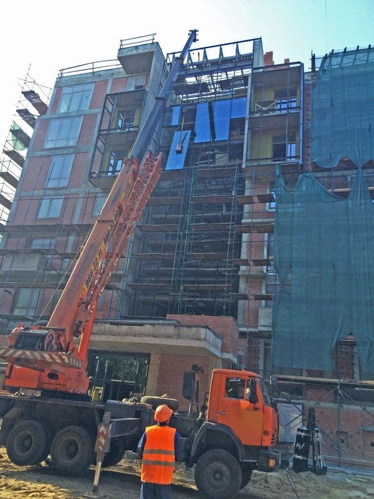 Монтаж 36 стеклопакетов с помощью мини-крана SPX1275 и вакуумных захватов Arlifter GS-850.