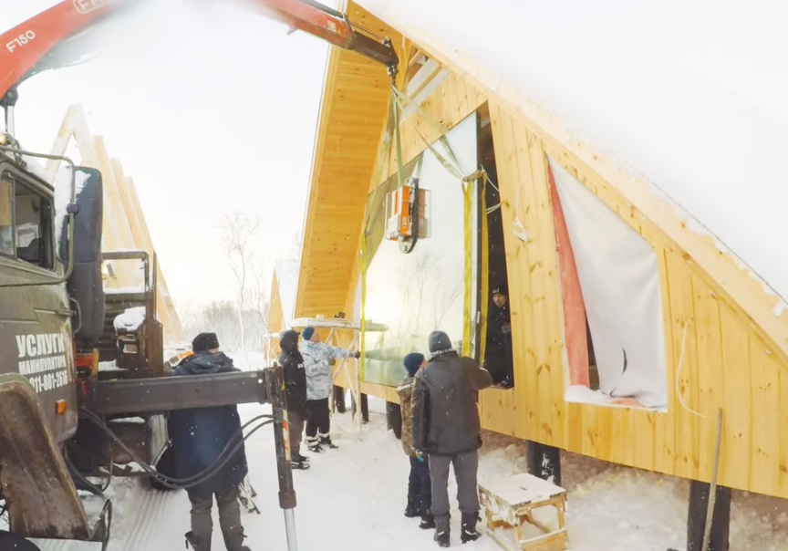 Вакуумные захваты собственного производства компании Арлифт были разработаны с учетом географических особенностей нашей страны: холодного севера, дождливого запада и теплого, влажного юга. Оборудование отлично справляется с работой при температурах от – 25 С° до +50 С°. К тому же, система влагоотделения позволяет проводить монтаж во время осадков: и в дождь, и в снег. Поэтому, с учетом непогоды, решение использовать технику Арлифт при остеклении коттеджей на новой базе отдыха в Мурманске было очевидным.