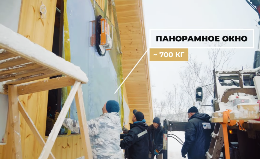Стеклопакеты весом около 700 кг монтировали с помощью вакуумного захвата Arlifter GS-850, грузоподъемность которого составляет 850 кг.