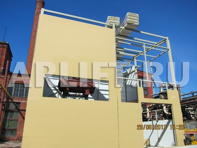 Котельная - горизонтальный монтаж стеновых сэндвич-панелей
