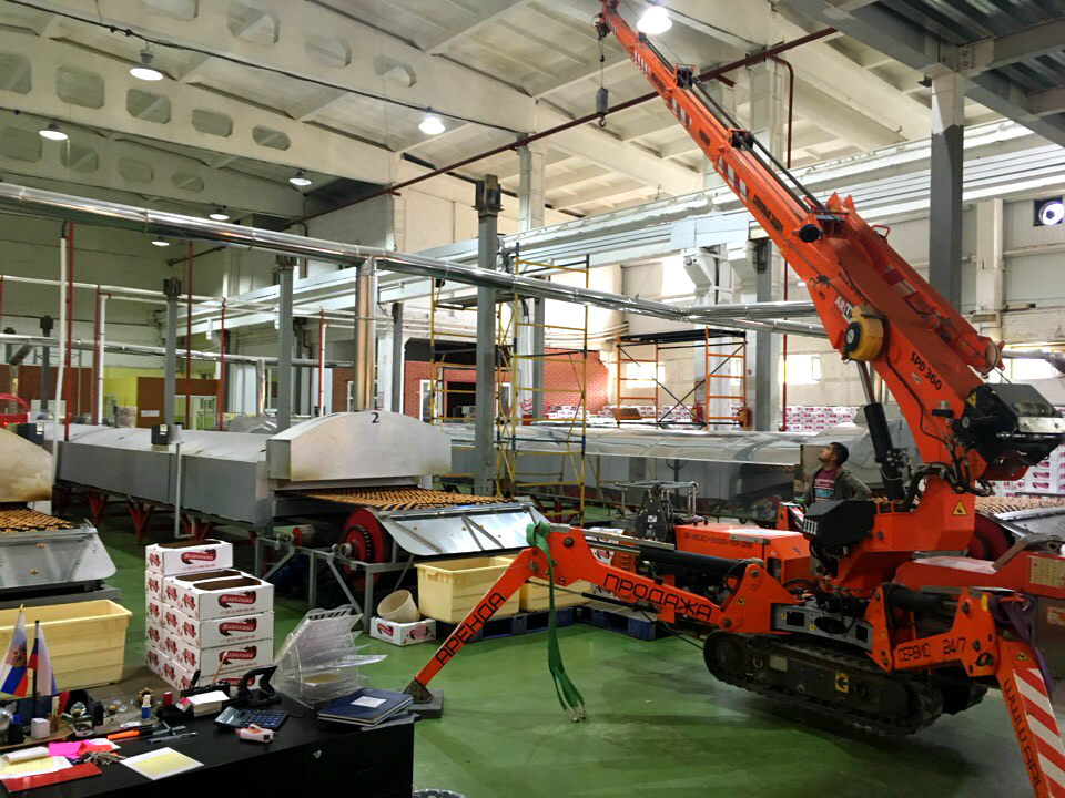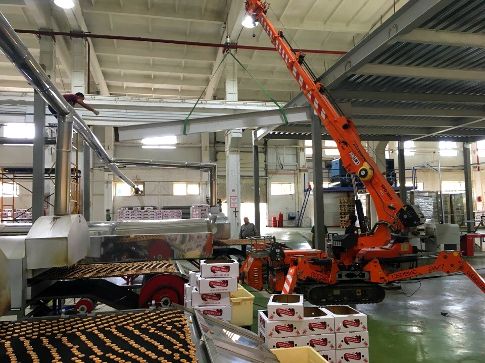 Расположение производственных линий сильно ограничивало возможности размещения строительной техники, поэтому для их осуществления был выбран компактный мини-кран Jekko SPD 360 C+, который может с одинаковым успехом работать как снаружи, так и внутри помещения.