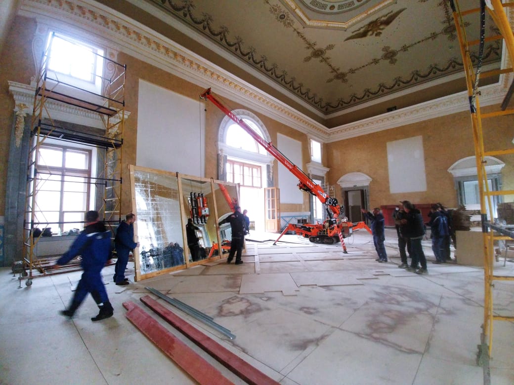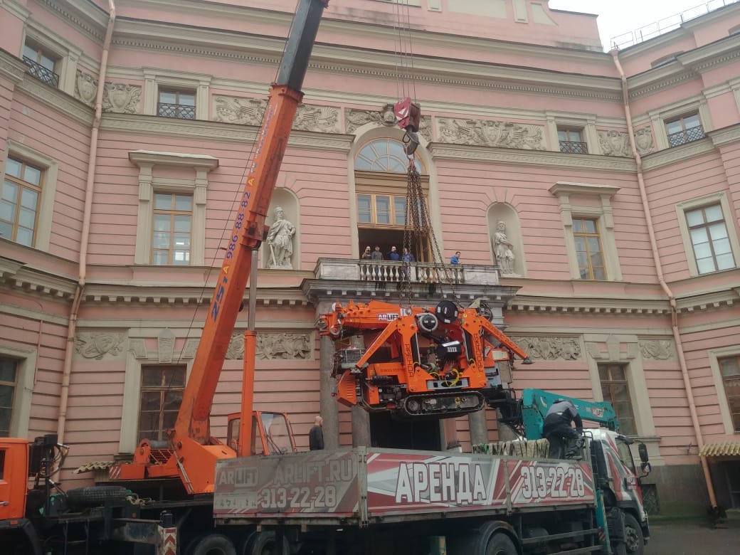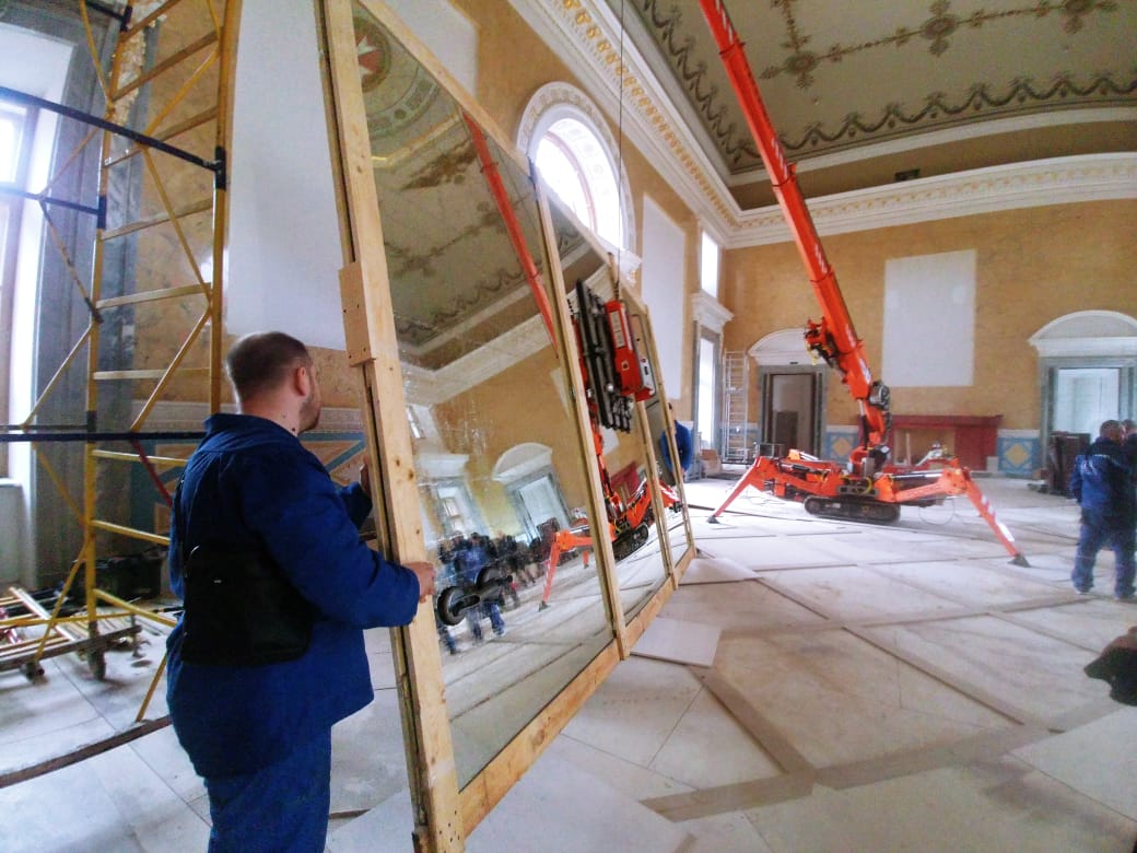 9. В 2020 году компания АРЛИФТ участвовала в реставрации помещений Михайловского замка. Для установки крупногабаритного зеркала толщиной 6 мм и размером 5*3 м в Георгиевском зале были задействованы мини-кран АРЛИФТ SPD360CDH и вакуумный захват ARLIFTER GS-R-600.
