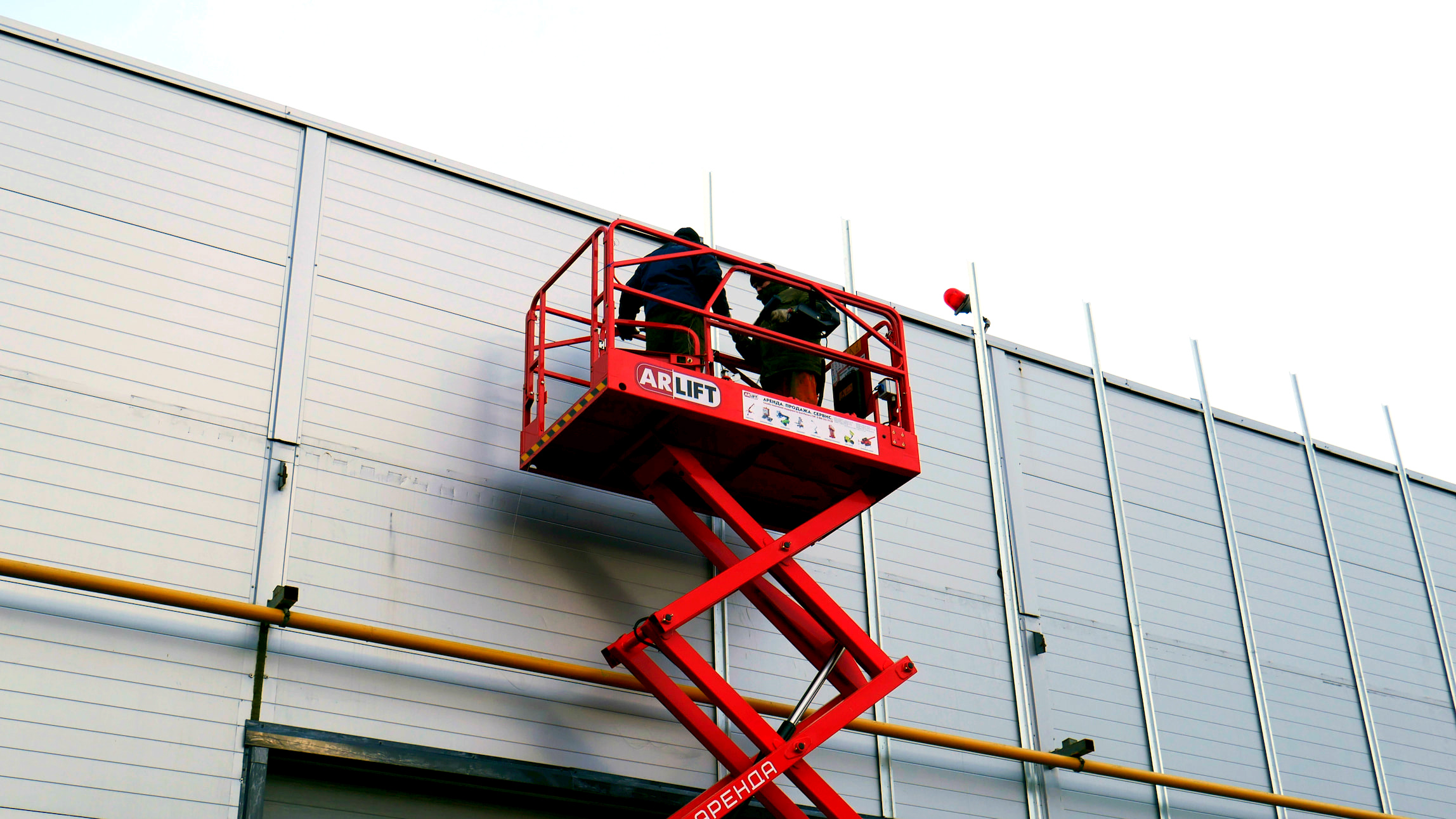 Монтаж профиля с помощью ножничных подъемников АРЛИФТ