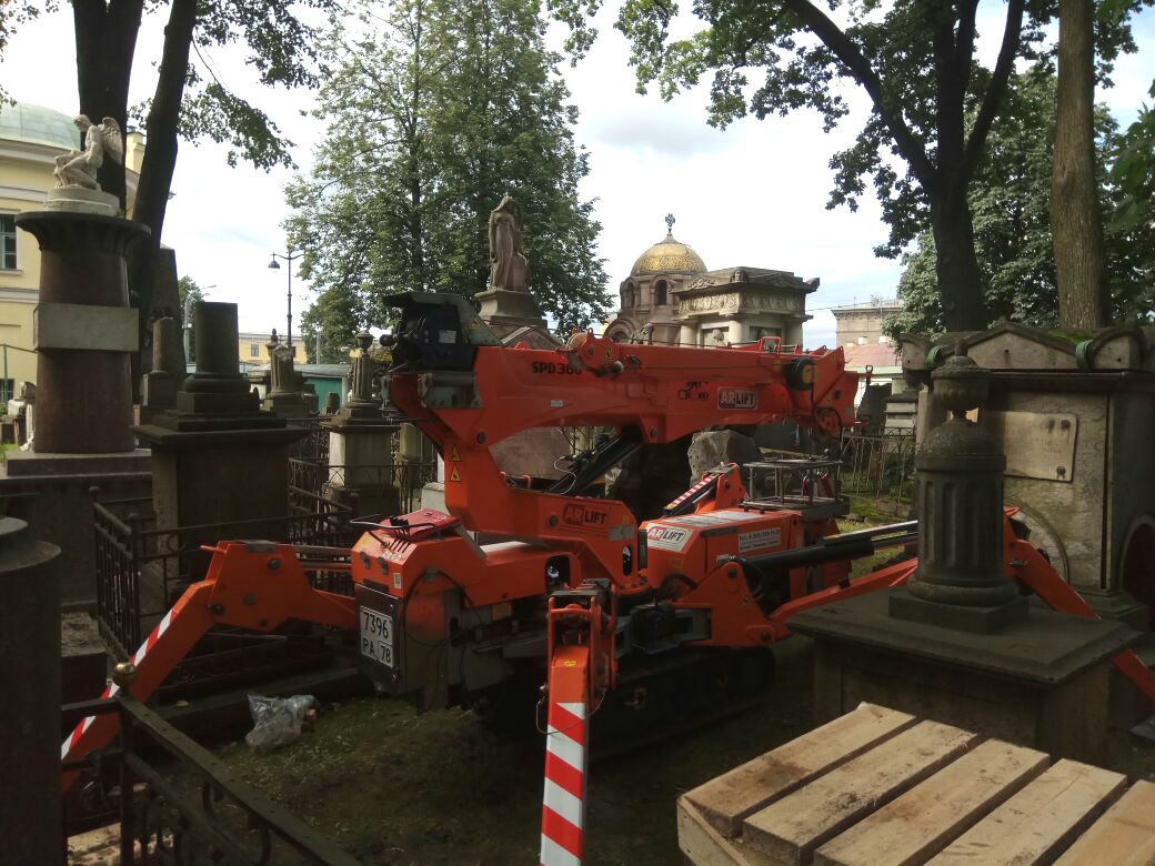 Для компании АРЛИФТ стояла необычная задача – требовалось произвести на территории кладбища демонтаж надгробия весом 1500 килограммов.