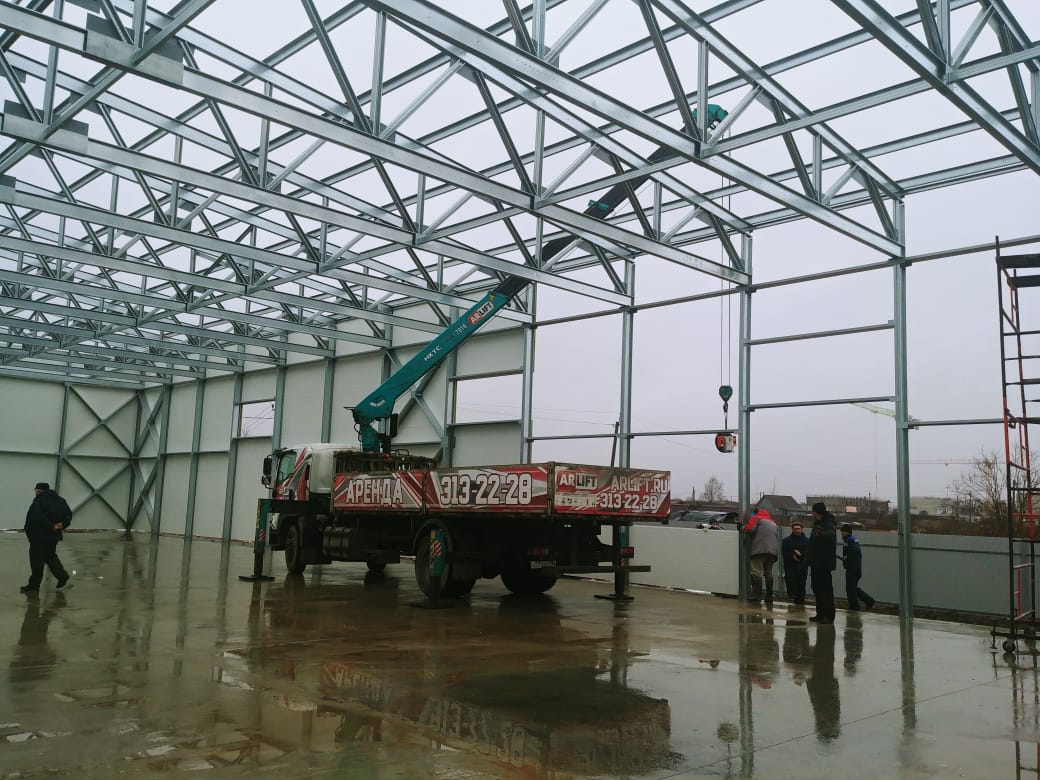 Строительство ангара с помощью техники Арлифт - Санкт-Петербург