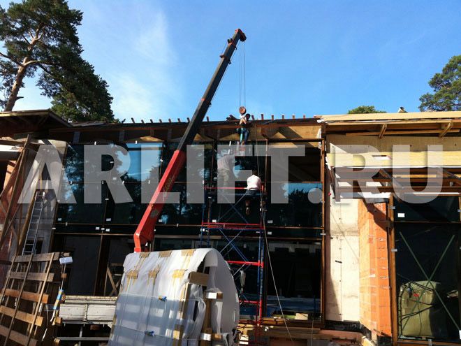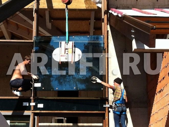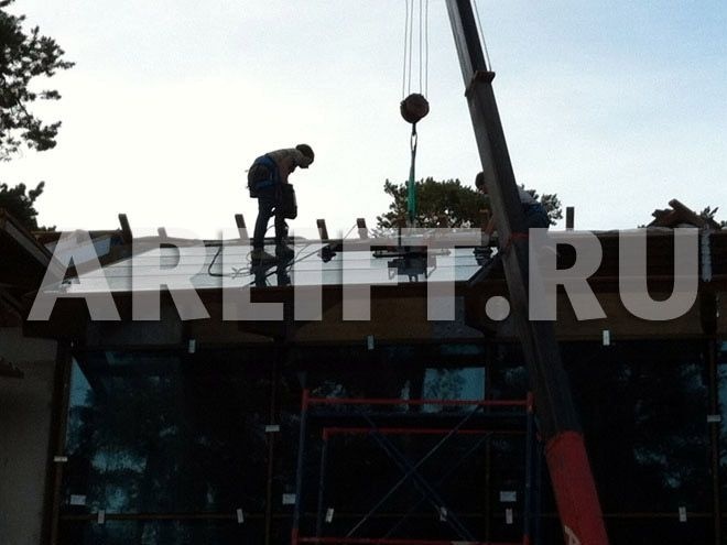 Монтаж 36 стеклопакетов с помощью мини-крана SPX1275 и вакуумных захватов Arlifter GS-850.